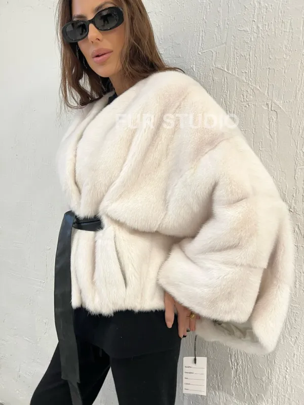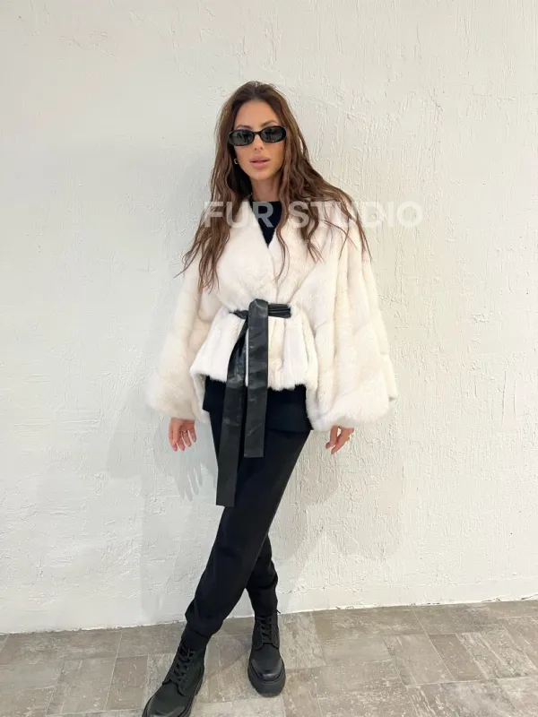 Мех данной шубы аукционная норка , цвет белый. Предлагается в размерах от 38 до 58 (oversize). Длина модели 50-55 см, что выгодно подчеркивает фигуру девушек. Эта модель идеально подойдет для девушек и женщин, предпочитающих роскошные натуральные меха.