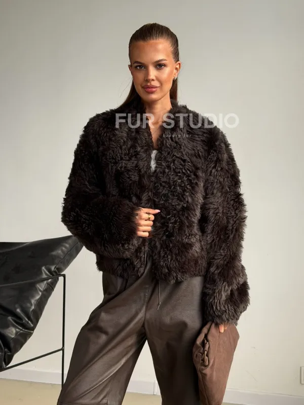 Дубленка кроп-топ из овчины калган доступна для покупки в нашем шоуруме Furs Studio в , а также предлагается удобная доставка во все города России. Обогатите свой гардероб этой дубленкой, которая прослужит вам многие годы, добавив немного роскоши в ваш повседневный образ.