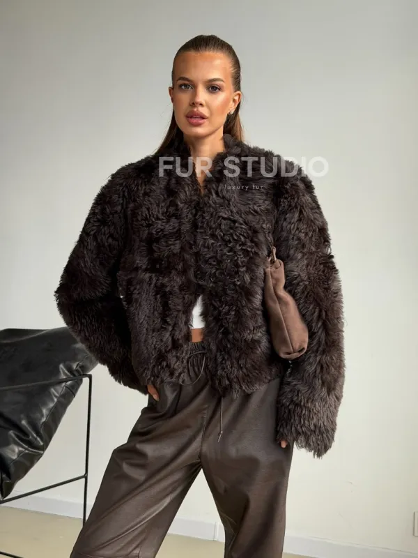 Дубленка кроп-топ из овчины калган. Модель предлагается в размерах от 42 до 48. Оптимальная длина моделей 45-50 см подчеркивает линии вашей фигуры. Эта дубленка станет неотъемлемой частью гардероба для тех, кто предпочитает роскошь и утонченность натуральной кожи.