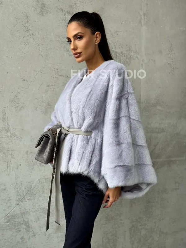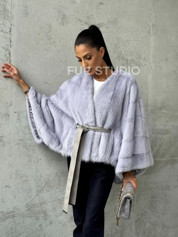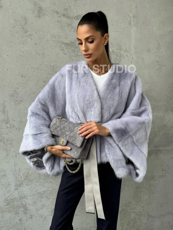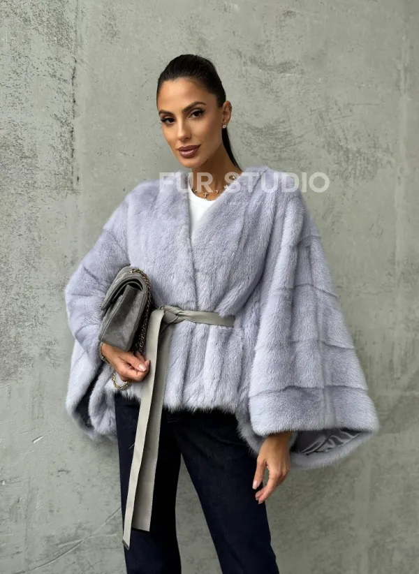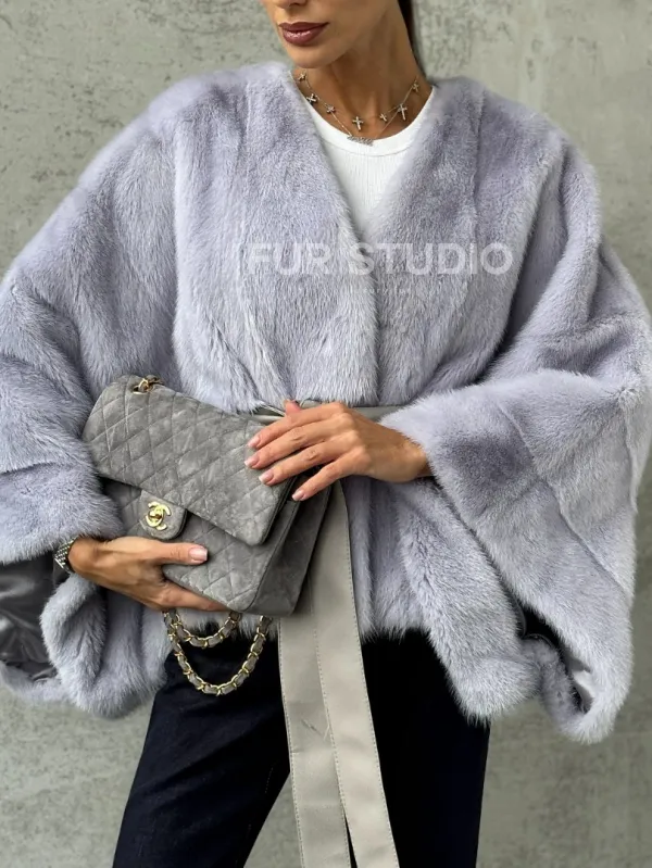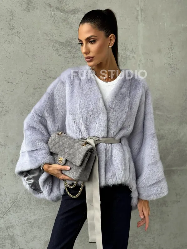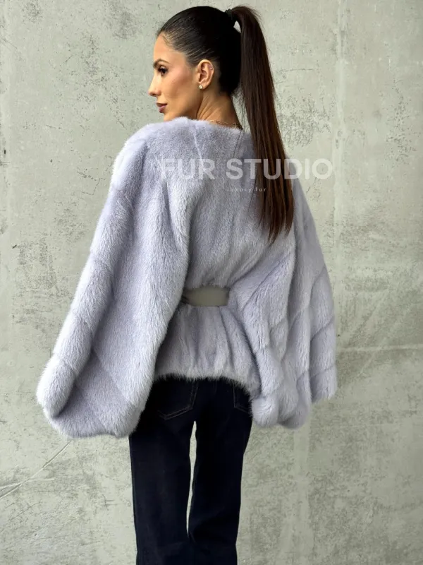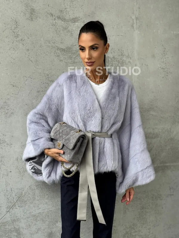 Мех данной шубы аукционная норка, цвет голубой. Предлагается в размерах от 40 до 58 (oversize). Длина модели 50-55 см, что выгодно подчеркивает фигуру девушек. Эта модель идеально подойдет для девушек и женщин, предпочитающих роскошные натуральные меха.