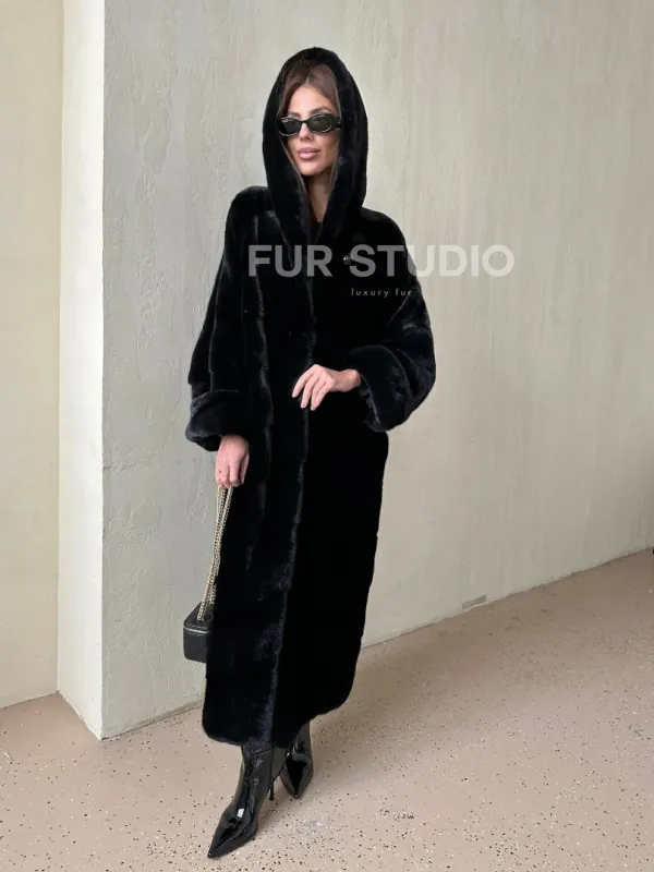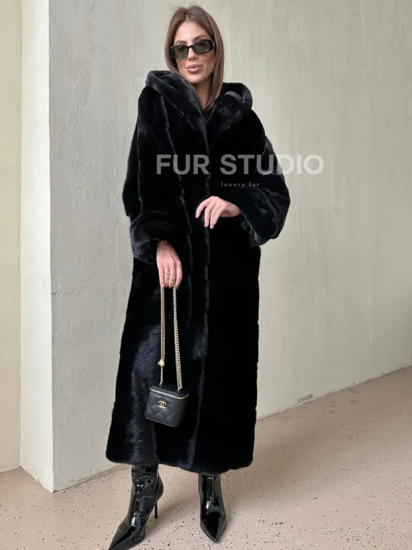 Шуба из аукционной норки VELVET, паркет с капюшоном 100723