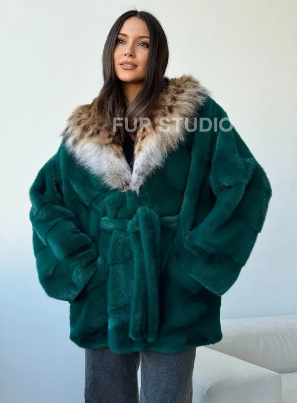 Норковая шуба с капюшоном из рыси 102514