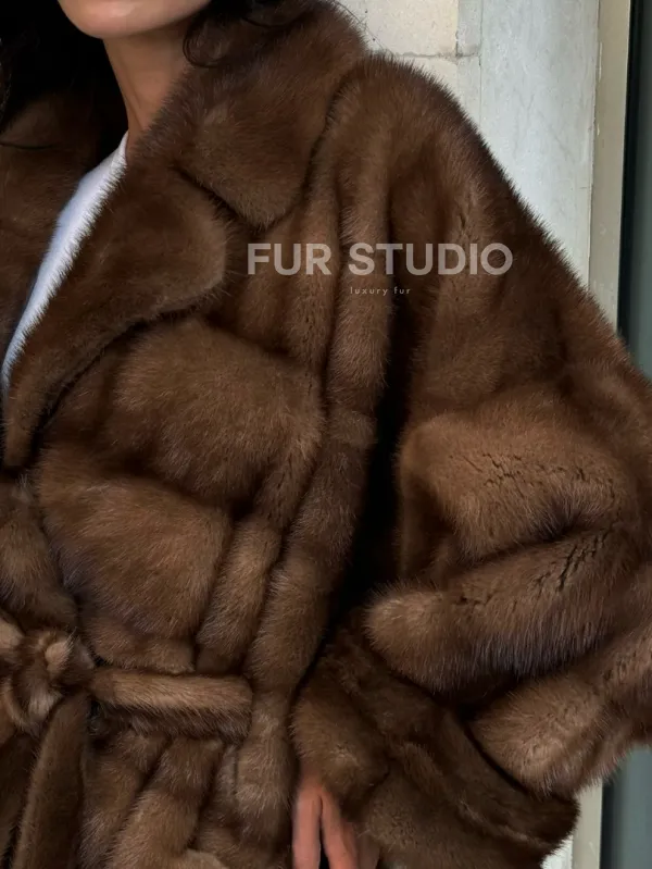 Прямой крой зрительно увеличит рост и скроет недостатки фигуры. Меховой пояс выгодно очертит талию и создаст силуэт песочных часов. В шубе вы будете выглядеть женственно и лаконично. Широкие манжеты подчеркнут изящество кистей. Купить норковую шубу в цвете соболь с английским воротником могут девушки, которые разбираются в моде и имеют безукоризненный вкус.