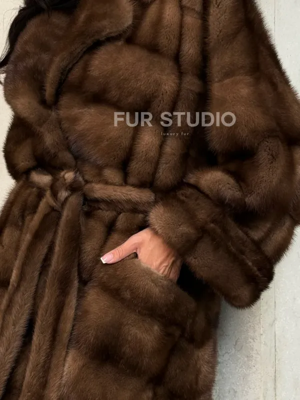 Норковая шуба в цвете соболь с английским воротником 100121