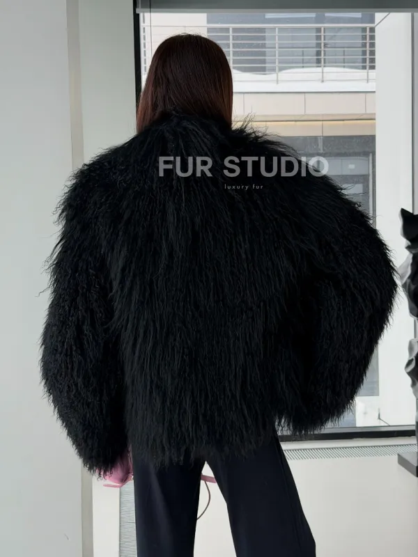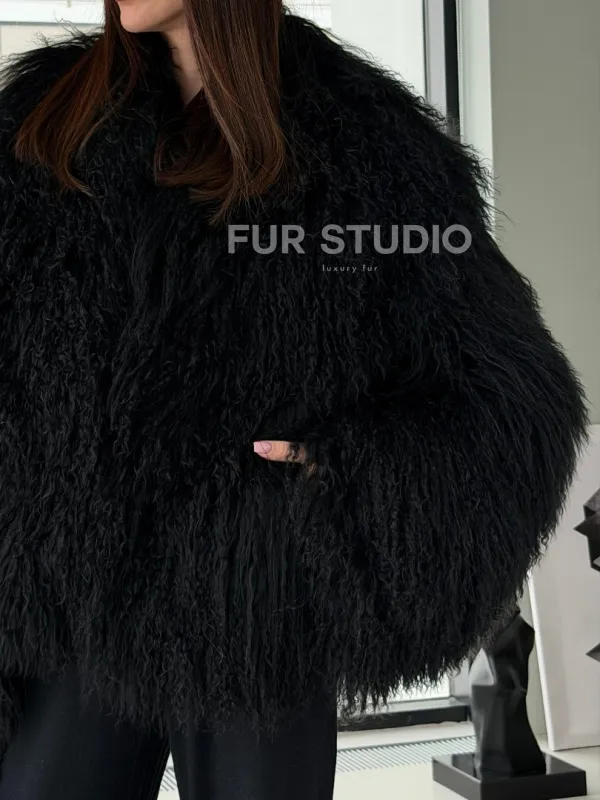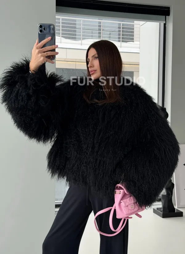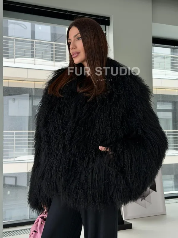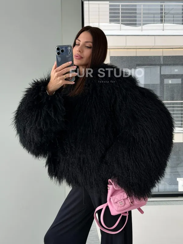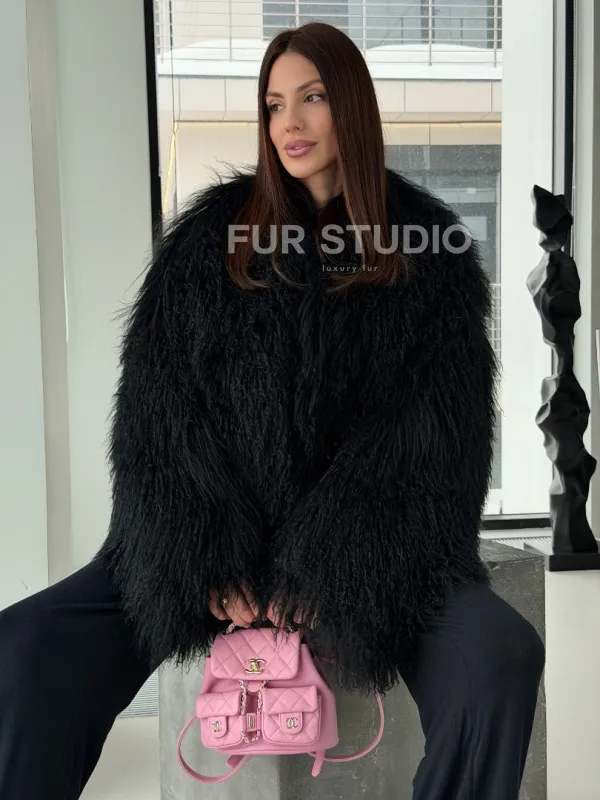 Полушубок черный из ламы 102526