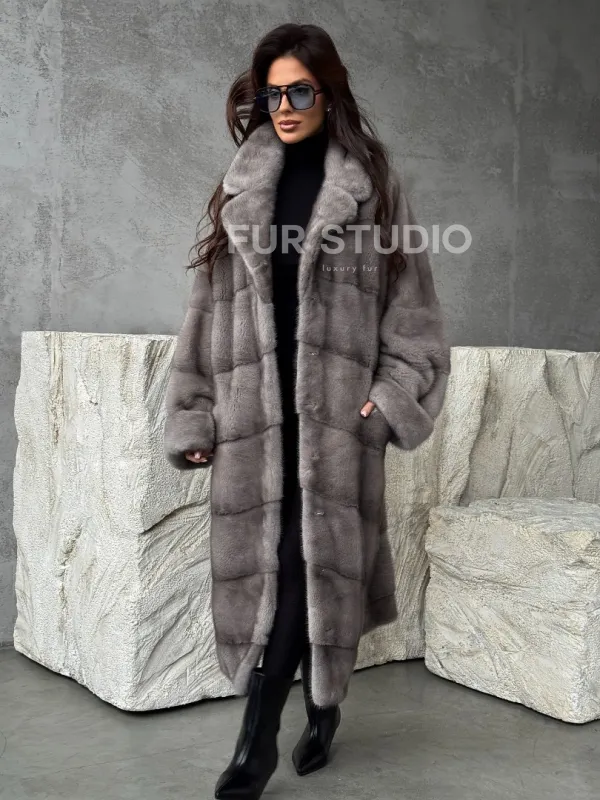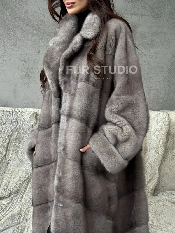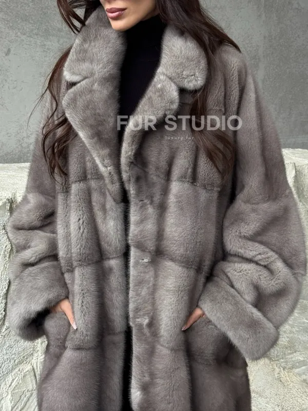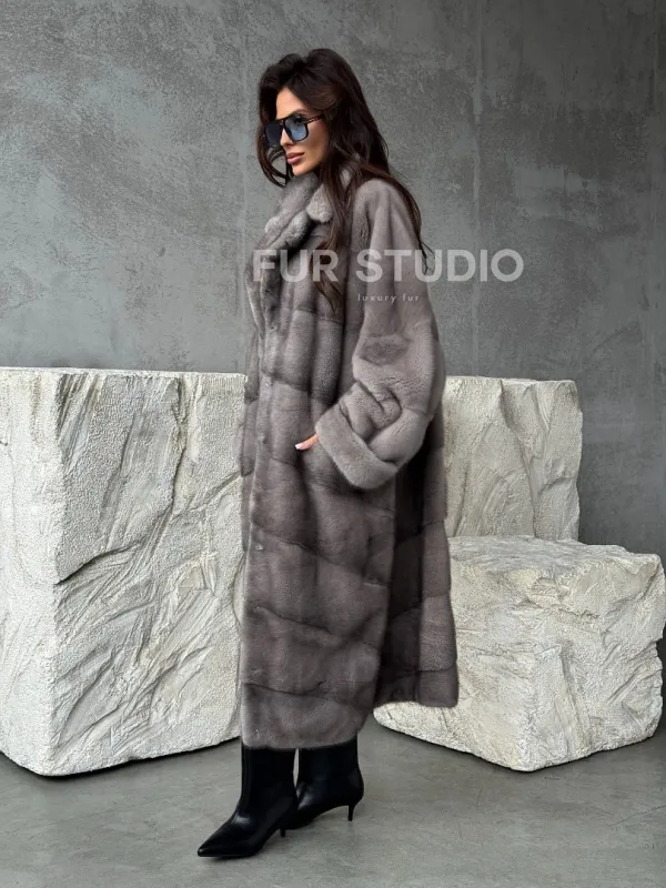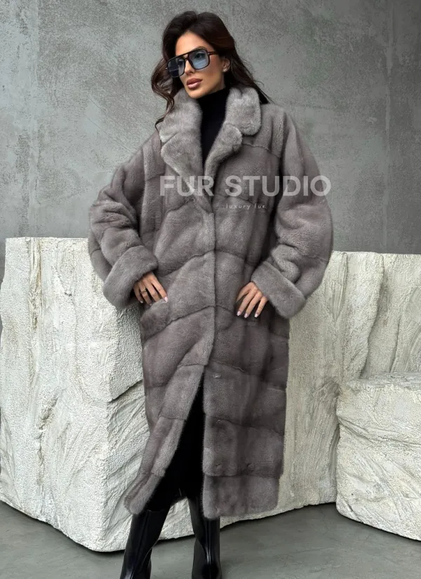 Серая норковая шуба oversize 102485