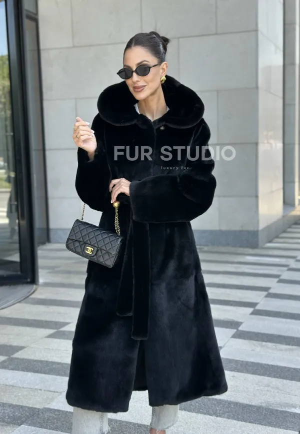Шуба норка BLACKGLAMA с капюшоном 100906