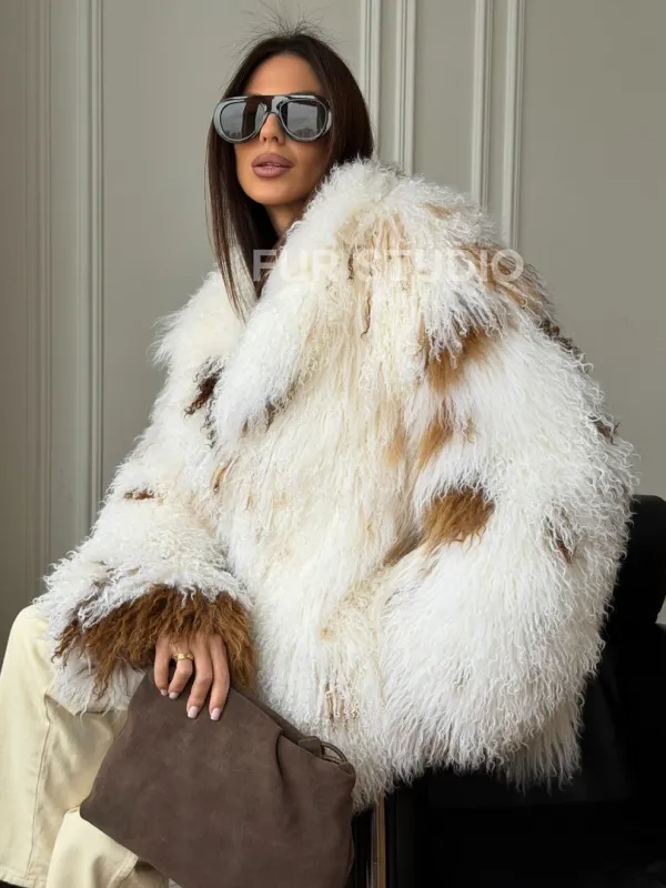 Шуба из ламы бело-коричневая 102550