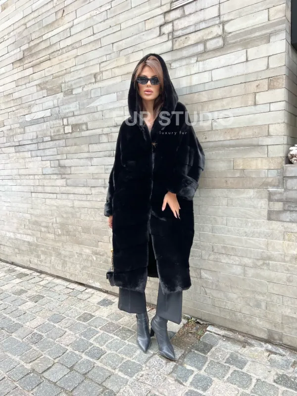 Шуба из меха норки SAGA FURS с капюшоном 100163