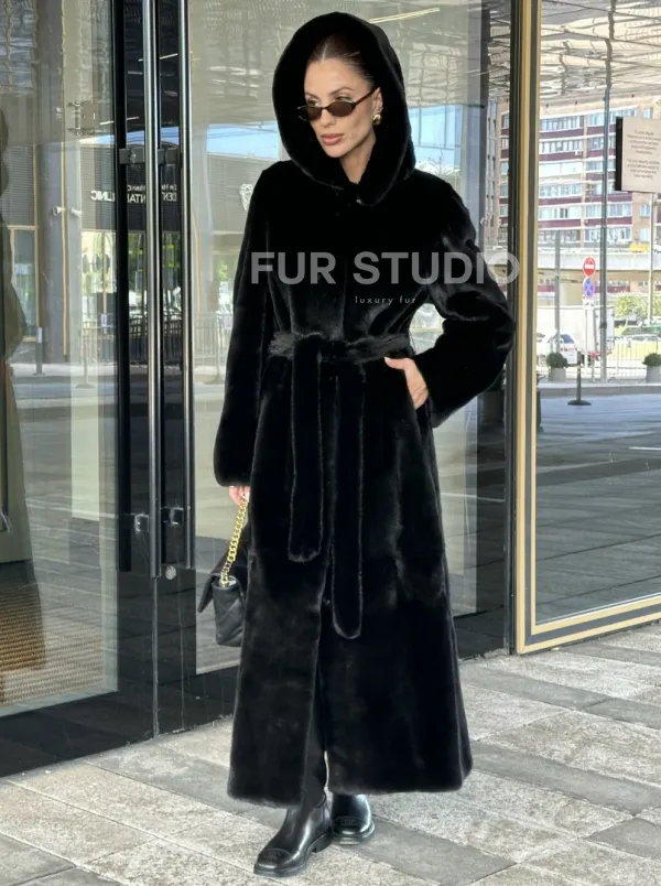 Удлиненная шуба из норки BLACKGLAMA с капюшоном доступна для покупки в нашем шоуруме Furs Studio в . У нас так же есть доставка во все города России. Добавьте немного роскоши в свой гардероб с этой шубой, которая будет служить вам многие годы.