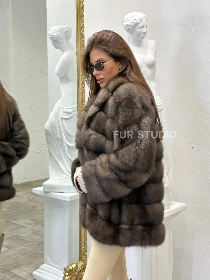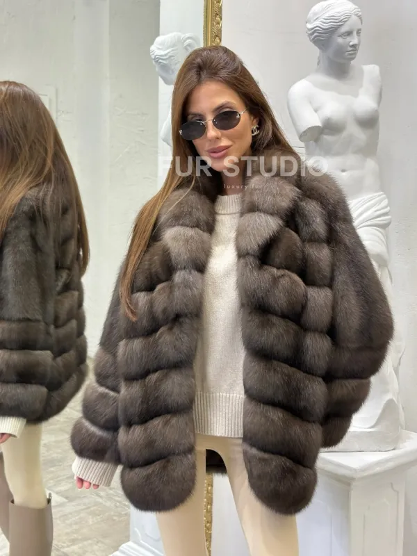 Стильный жакет из меха соболя доступна для покупки в нашем шоуруме Furs Studio в . У нас так же есть доставка во все города России. Добавьте немного роскоши в свой гардероб с этой шубой, которая будет служить вам многие годы.