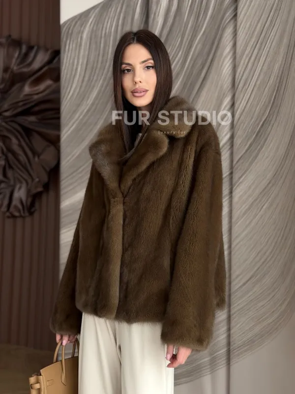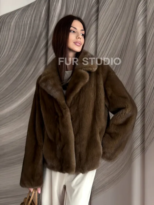 Мех данной шубы аукционная норка, цвет коричневый. Предлагается в размерах от 42 до 50. Длина модели 55-60 см, что выгодно подчеркивает фигуру девушек. Эта модель идеально подойдет для девушек и женщин, предпочитающих роскошные натуральные меха.