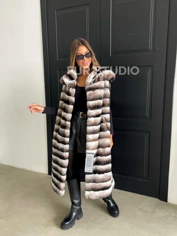 Жилет из меха орилага – отличный вариант для девушек, у кого ограничен бюджет. Изделие никогда не выйдет из моды. Удлиненный жилет зрительно увеличивает рост владелицы. Оригинальная расцветка подчеркнет роскошный оттенок волос и глаз хозяйки. Прямой крой сроет недостатки фигуры. Роскошный воротник позаботится о комфорте шеи и сделает акцент на ее грациозности.
